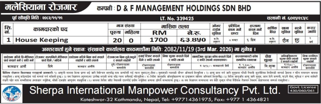 Demand Letterby sherpa IntlFebruary 24, 2026 House Keeping Interview Date : २०८२ फागुन १९ गते (3rd Mar. 2026)